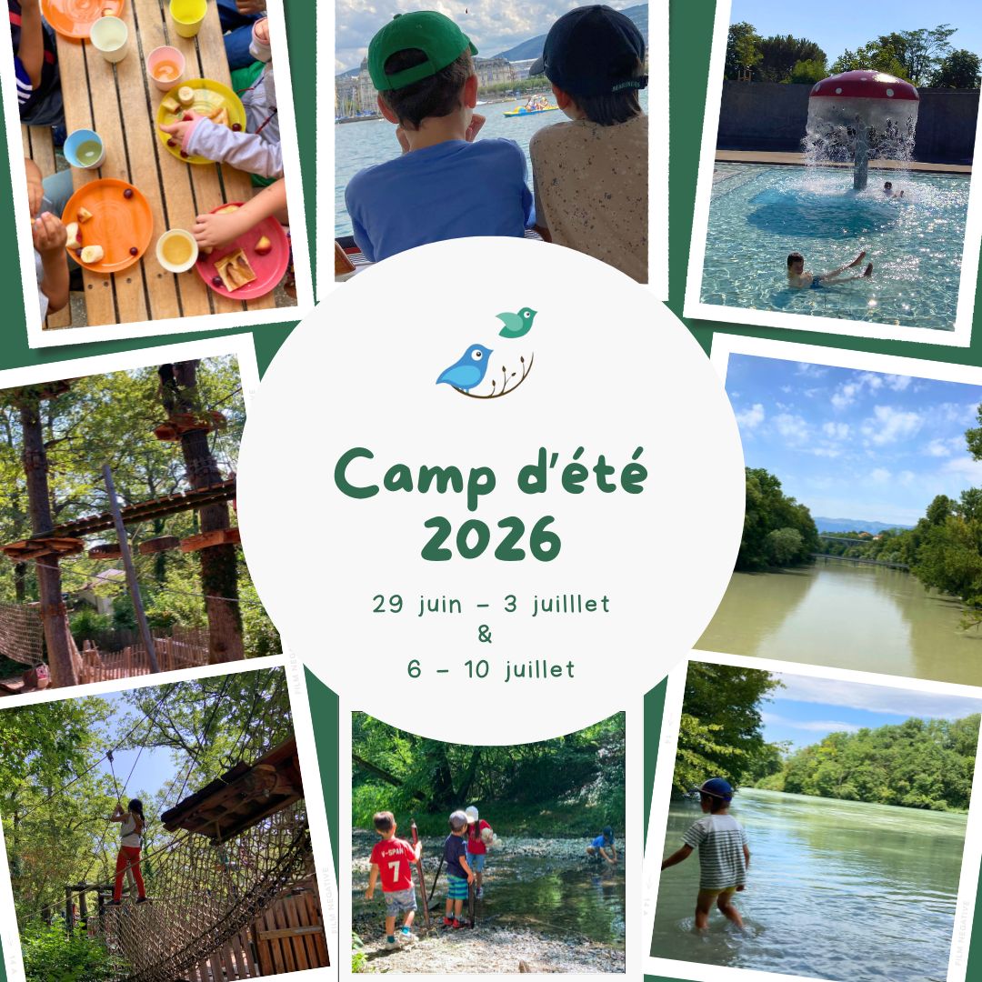 Little Birds est ravi d'accueillir vos enfants pour une ou deux semaines pleines de joie et d’aventures estivales ! Ouvert à nos familles actuelles, futures, ainsi qu’à quelques invités externes âgés de 3 à 6 ans, nos camps d’été propose un programme riche en découvertes autour de la nature, de jeux en plein air, d’activités créatives, et de sorties hebdomadaires dans les parcs, musées, fermes de Genève – sans oublier les balades en bateau sur le lac Léman ! Avec de petits groupes (maximum 10 enfants par semaine), c’est la façon idéale de commencer l’été dans la bonne humeur, entre amis et en explorant le monde qui nous entoure. Les places sont limitées – ne manquez pas cette opportunité !